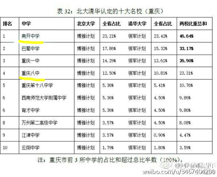 1.附上之前收集的北大清华对各省中学的排名,仅供参考