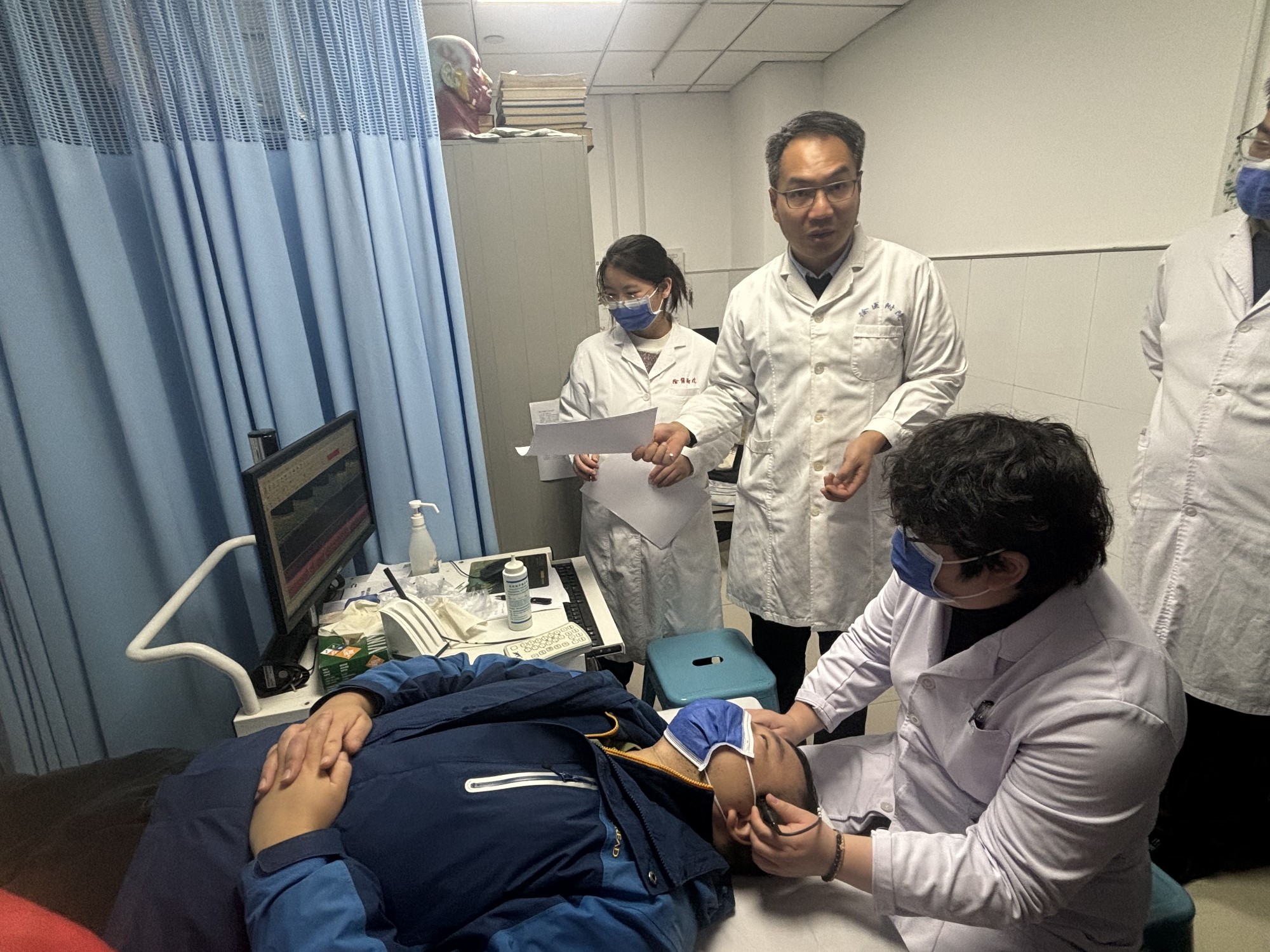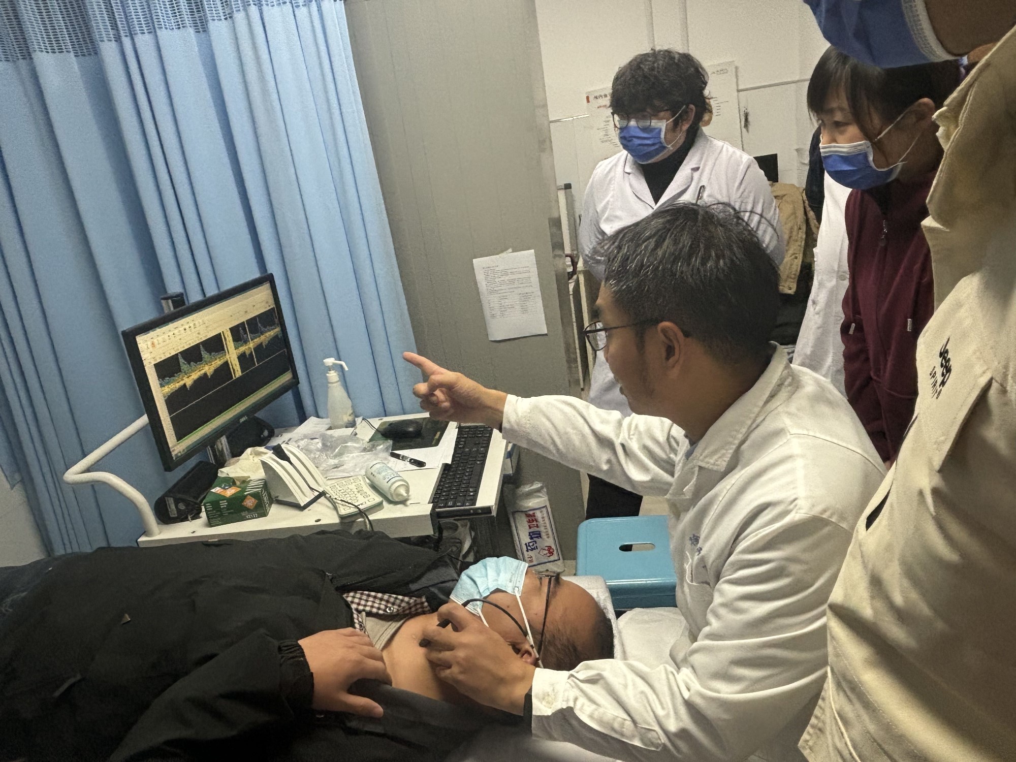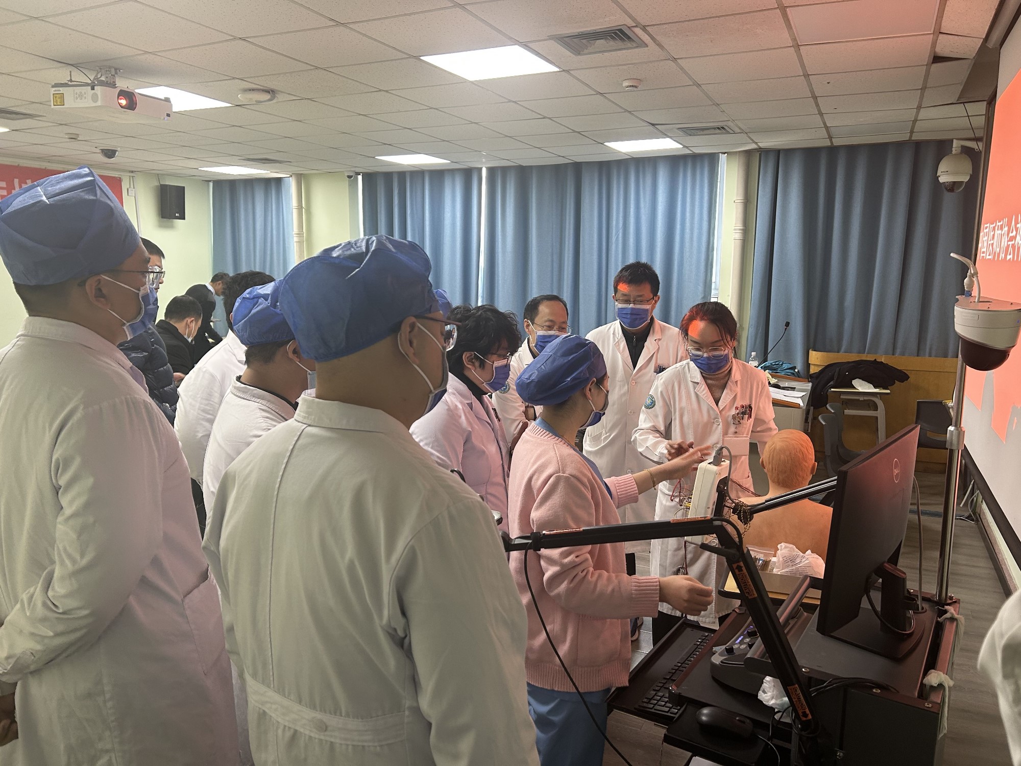 理论课结束后,薛国松副主任医师对呼吸机的使用进行了实际操作讲解,模拟出各种呼吸衰竭、通气障碍患者的通气模式选择,以及在临床中常见问题的解决措施。李举副主任医师、李晓雯医师等对中心静脉穿刺置管术进行了实际操作演示,讲解了在置管过程中可能遇到的问题及解决措施,并指导学员进行实际演练。陈浩副教授、孟文晴医师等在TCD室进行了经颅多普勒超声的实战演示,向学员们充分讲解了颅内血管的立体结构及TCD操作步骤,并指导学员们对颅内大血管进行TCD检查及判断。贺琳、班瑾等对脑电图监测的操作过程进行了实际操作演示,并讲解了在获取脑电图中可能遇到的阻碍以及处理措施,以及对常见异常脑电图的判断及鉴别。