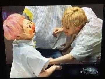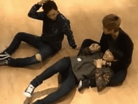 这里是他们在做躺放,中途灿妮睡着了,然后这些哥们就骗他躺放结束了让他给粉丝道歉 ,实在太可爱了忍不住上手捏