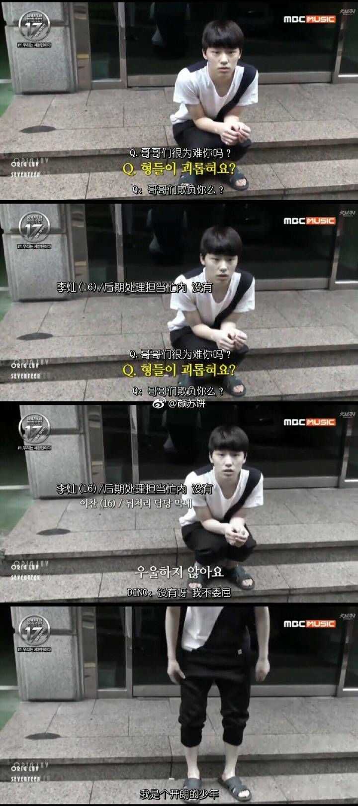 克拉们总是说,日常需要照顾12个哥哥的灿妮,是队里最成熟的小巨人。拥有12个哥哥却依旧感到非常孤独,被净汉问“Dino是谁的孩子呀?”