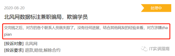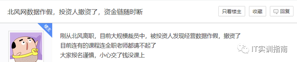她是19年12月报的名,但12月05日就有北风网资金链面临断裂的消息传出,就是在“北风教育吧”。