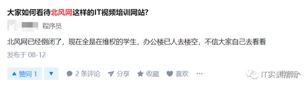 唯一在文章里提到它们是19年3月15日写的《 致315晚会:证书培训上了榜,不良IT培训何时曝光? 》,北风网在吐槽范围内。