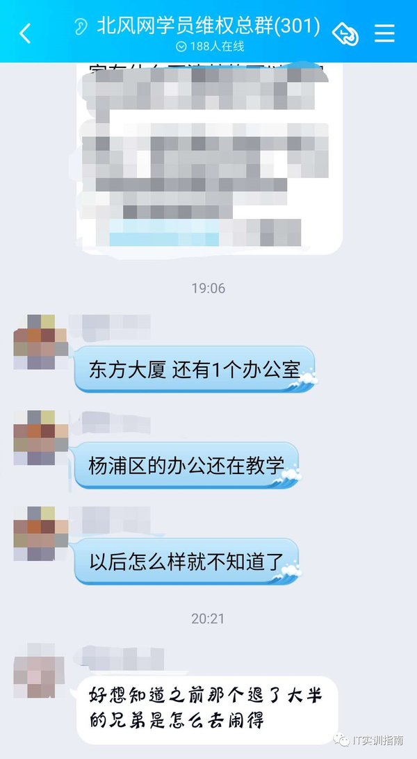 9月20日,训哥儿进入“北风网学员维权总群”,有群友称: