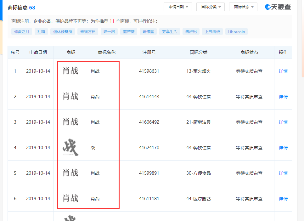 我们深扒一下这家公司所注册的商标,你会发现,他先后注册了68个商标,绝大部分都是跟肖战有关系的,这就足以证明这个公司就是肖战的资本关联企业。