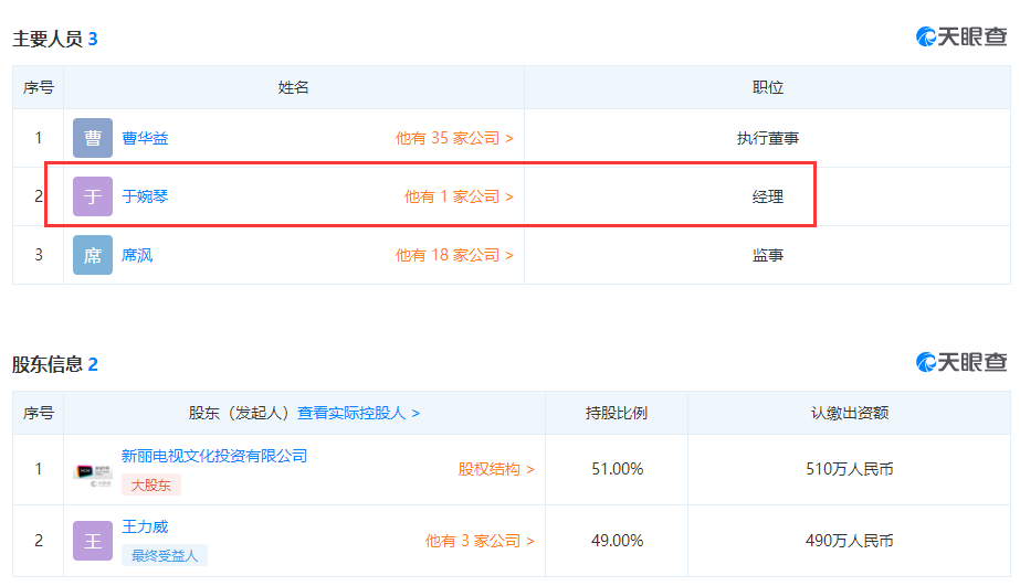 而我们再看一下这家公司的主要人员,我们发现了一个小细节,就是有传言说肖战的经纪人于婉琴,便是在这家公司里面担任了经理人选,毫不夸张地说,王力威就是扮演了肖战和新丽传媒深度绑定的中间人。