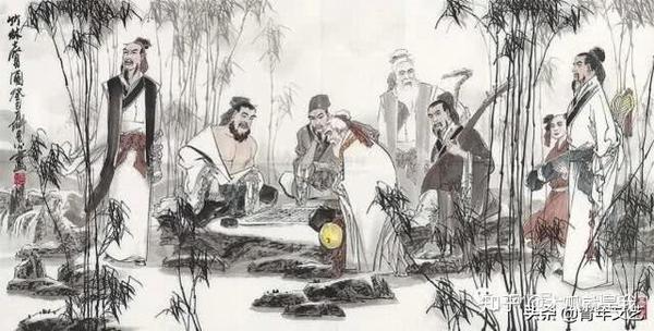 竹林七贤指的是三国魏正始年间(240-249),嵇康、阮籍、山涛、向秀、刘伶、王戎及阮咸七人,先有七贤之称。因常在当时的山阳县(今修武一带)竹林之下,喝酒、纵歌,肆意酣畅,世谓七贤,后与地名竹林合称。