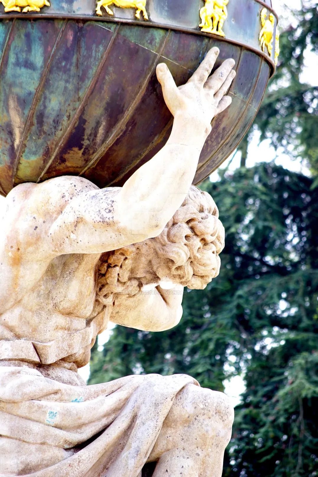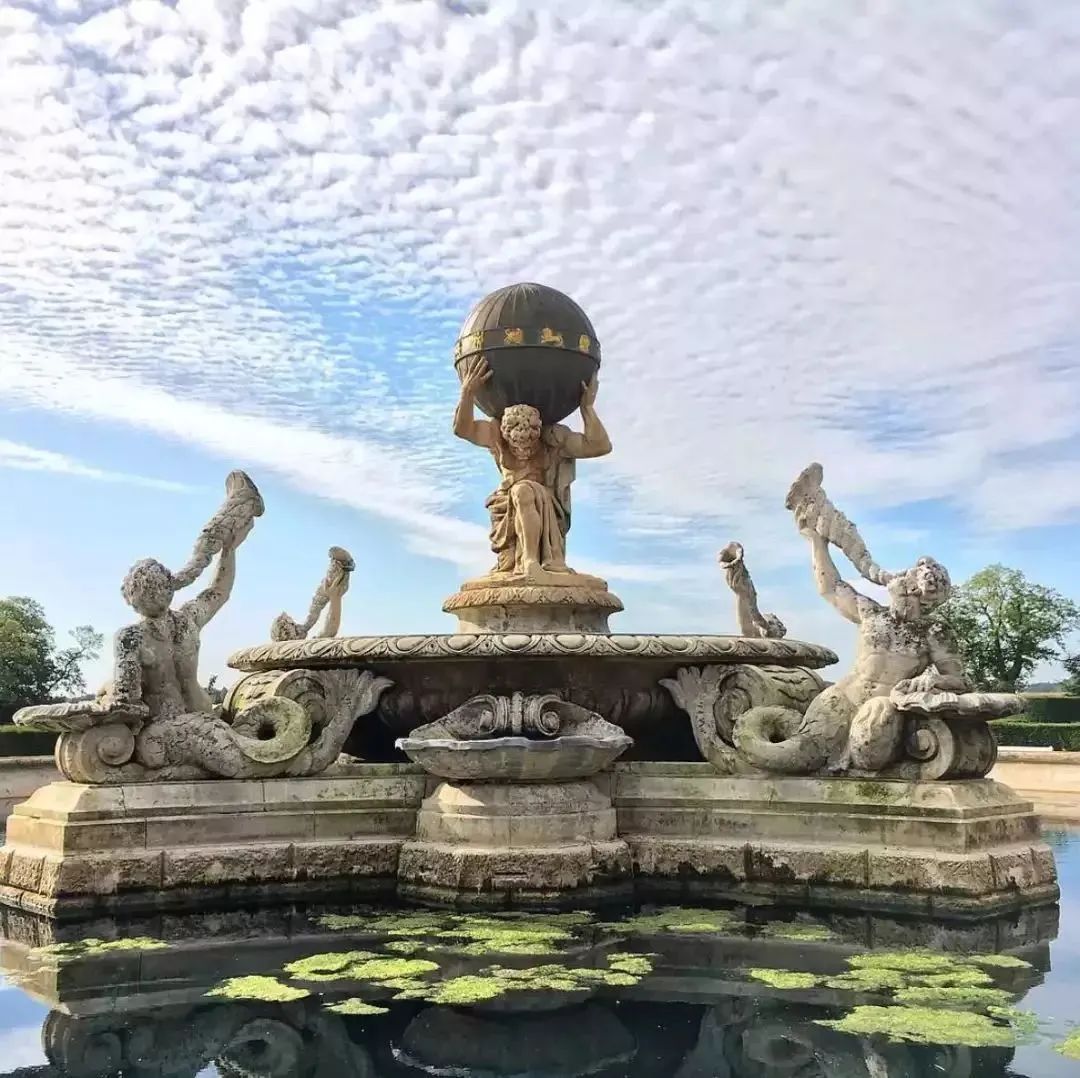 喷泉中央的“阿特拉斯”是希腊神话中的擎天神