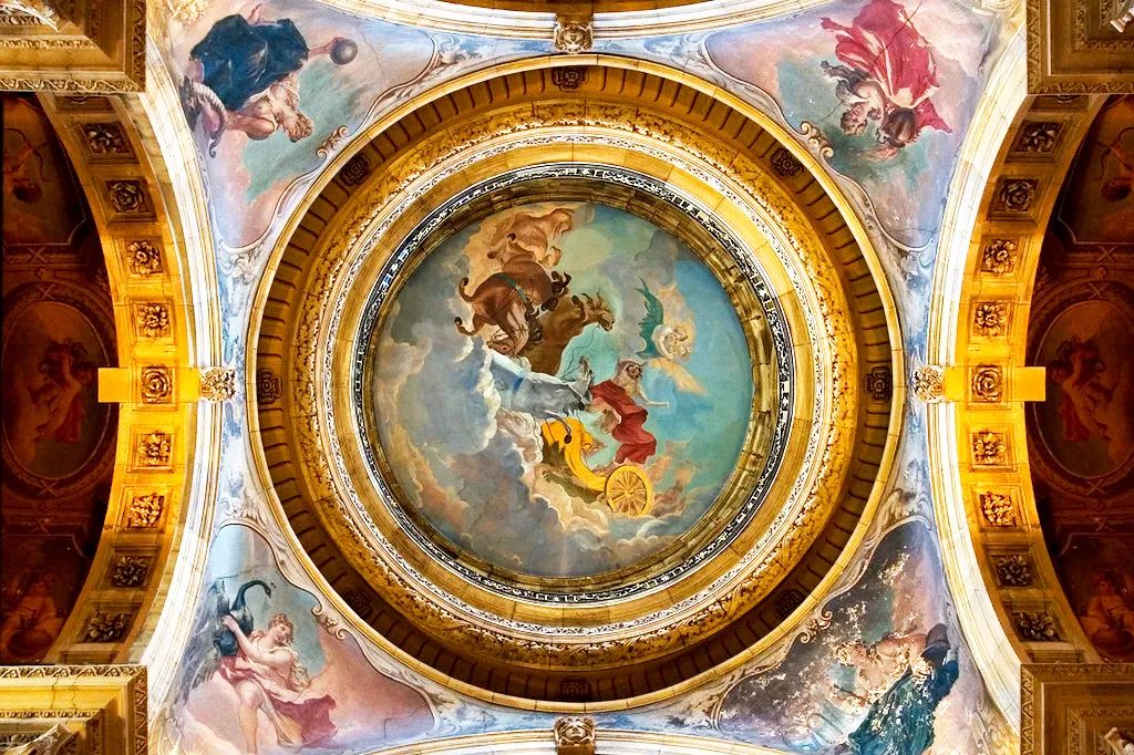 穹顶受灾最为严重,天顶画烧到几乎认不出,