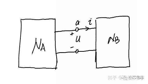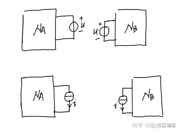大致内容是这样的,下面的电路图里,NA和NB两个一端口网络里,其端口电压和电流分别为u和i,那么,就可以用一个电压源或者电流源来替代其中的一个网络,大小就是u和i。