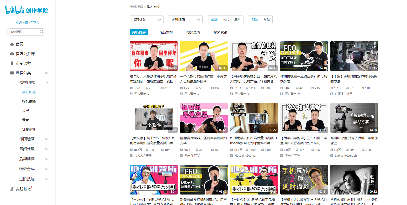 我们在B站搜一下,可以找到很多手机拍摄的教程作为参考学习。
