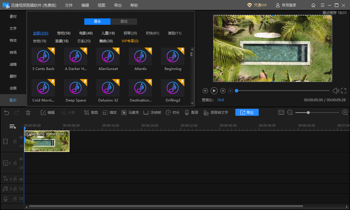 有些软件还附带了音频、视频素材,可以在剪辑工具内部直接下载素材,用起来还是比较方便的。