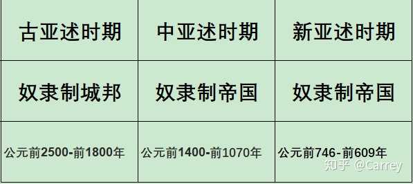 2.亚述: 是从底格里斯河中游河畔的阿淑尔城发展而来的西亚古国。根据亚述语的发展变化,亚述学界一般将亚述历史分为古亚述(从大约公元前2000年到大约公元前18世纪)、中亚述(从大约公元 前1400年到大约公元前1050年)和新亚述(从公元前934年到公元前612 年)三个并不连贯的阶段。 [1]