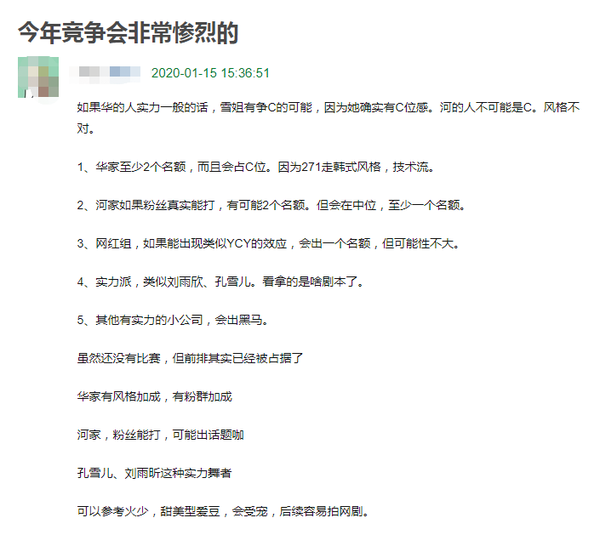 有路透说孔雪儿、许佳琪以及喻言初评级都是A,更是C位热门人选。