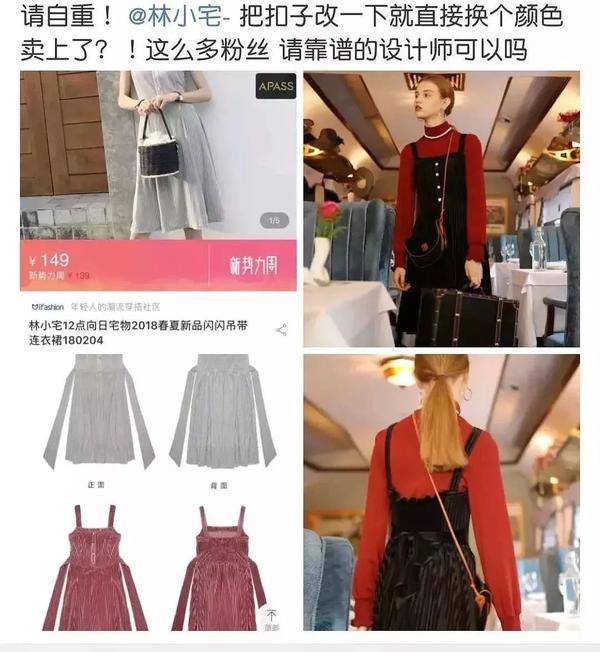 比如裙子和一些小众品牌无论是外形还是材质都完全一样,将扣子换个颜色就打板售卖。