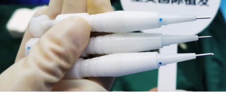 我们最初就是用种植针,这个跟渊源有关系。早期是由一个美国回来的前辈带过来的技术,经过专家研究发现是损伤最小、恢复最快、最后自然度最高的,所以一门心思发展种植针这个技术。