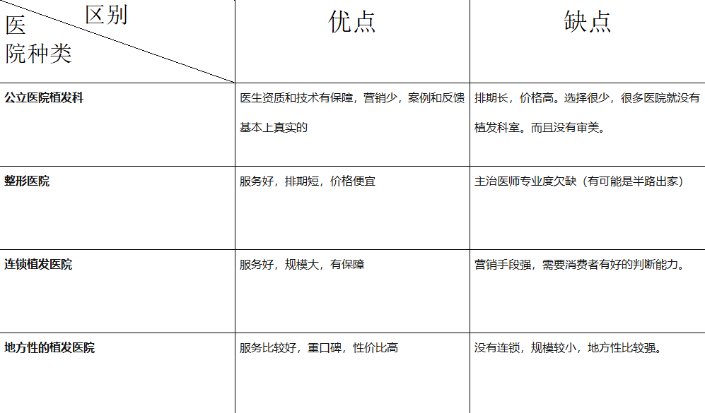 专科医院价格比公立便宜一些,是因为它们可以通过手术量的累积,达到不错的盈利效果,但公立不能,各地公立做植发手术的医生很少,需要投入的医疗资源多,排队的人也很多,所以价格便宜不下来。 这是我总结的关于植发医院的区别,大家可以比照一下,会有更多选择!