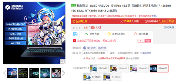 在新晋的RTX 40系列Laptop GPU笔记本品牌中,机械革命在定价策略上无疑最激进,当各家新品定价居高不下的时候,机械革命极光Pro 15.6英寸已经将价格杀至6488元,如果遇到促销活动,还会进一步下探,比同门AMD平台的蛟龙15K便宜500元以上。