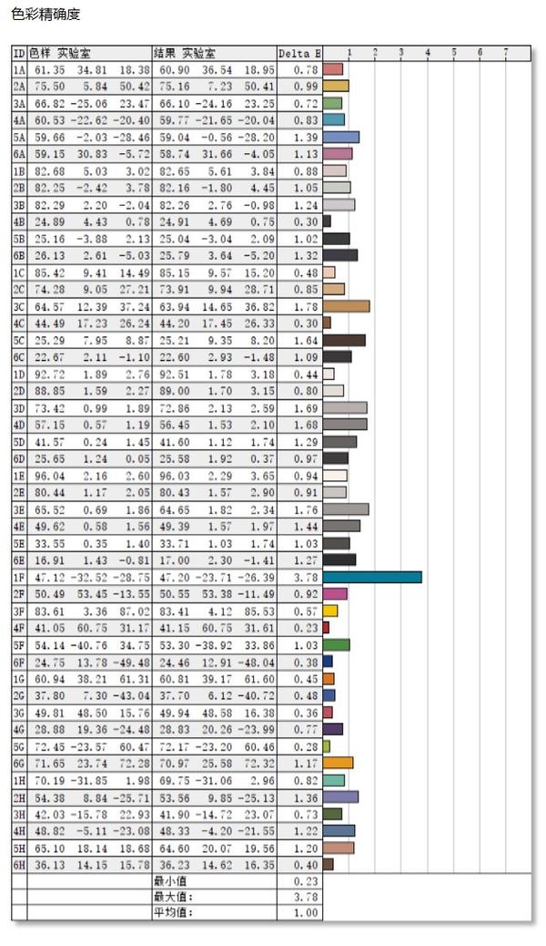 在屏幕测试中,可以看到屏幕的最高对比度为1360:1,色彩精度△E平均值为1,表现水准不错。