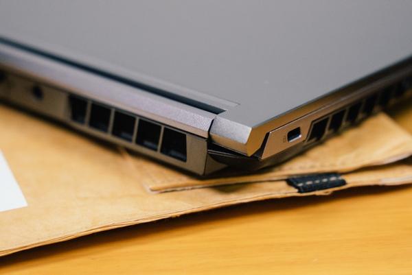 在扩展方面,机械革命极光Pro的扩展性能也可圈可点,比如用上了全尺寸的SD读卡器,还提供自带盖板的RJ45网络接口,HDMI 2.1、miniDP、USB-C 3.2 Gen2,以及2个USB 3.1 Gen2和1个USB 2.0,还包括1个二合一音频接口和1个麦克风接口,同时笔记本还支持Wi-Fi 6无线网络连接。唯独可惜没有Thunderbolt 4接口,可以理解为机械革命极光Pro在多数玩家可能用不到的功能上做了减法,以达成节省成本的效果。