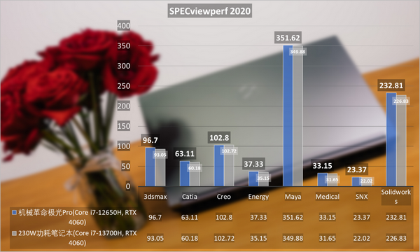 接下来是笔记本的内容创作体验。英特尔从12代酷睿开始引入融合架构概念让CPU拥有了更多线程,并依靠在行业内绝对的影响力,我们所能接触到的大多数专业软件都围绕英特尔以及英伟达CUDA Core进行优化。