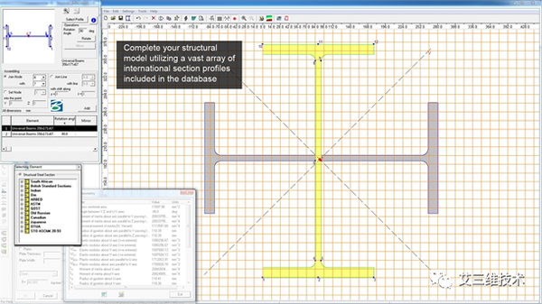 使用丰富的国际通用标准的截面配置文件库(不另外收费)完成结构模型。充分利用全球性的设计机会。