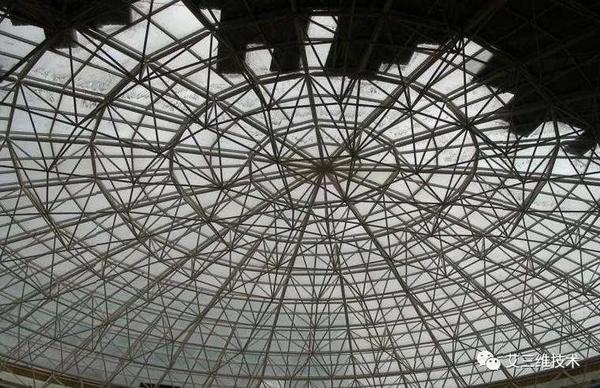 该类建筑往往中间没有柱子,而通过网架等空间结构把荷重传到建筑四周的墙、柱上去,如体育馆、游泳馆、大剧场等。