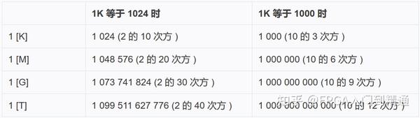 K、M、G、T 是表示大数据量时常用的单位。1K 的大小有 1000(10 的 3 次方)和 1024(2 的 10 次方)两种计数方法。
