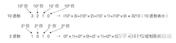 我们常用的数值表达方式是十进制,但在数字电路中采用的是二进制,如下图所示: