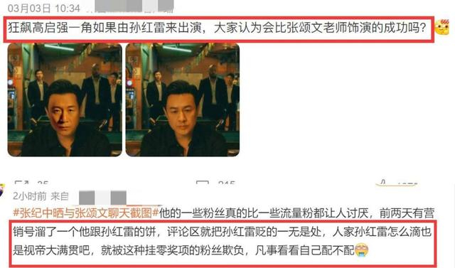 没想到就是这样一个问题,引来一些偏爱张颂文的粉丝,在评论区猛踩孙红雷抬高张颂文。