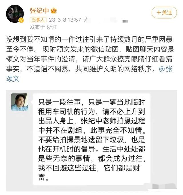 就在几个月前,有网友在扒张颂文过往时,发现他在张纪中剧组拍戏时,有过因为在拍摄结束后清理污染环境的垃圾,而惨被司机丢在沙漠的经历。