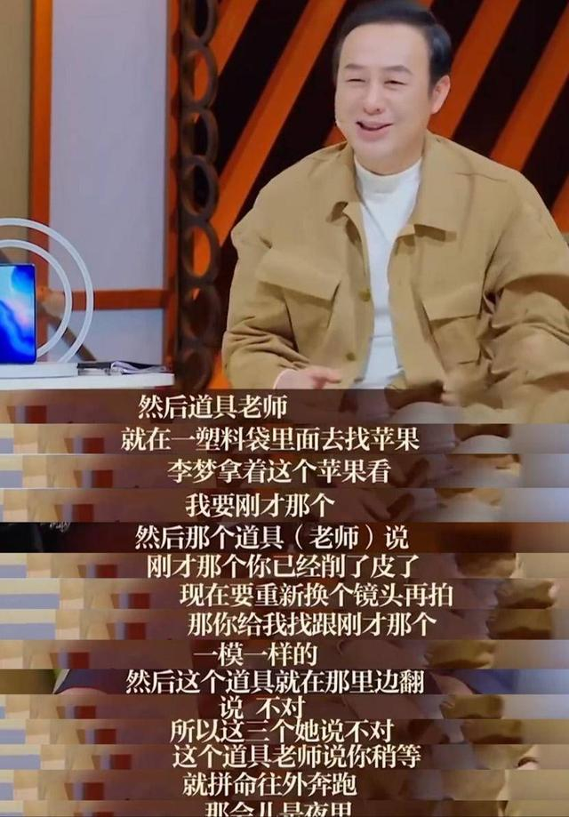 在某期节目中,演员李梦在台上竞技,到了点评环节张颂文讲述了李梦拍戏时,曾为了要求使用两颗一模一样的苹果,致使剧组人员半夜里四处买苹果的往事。