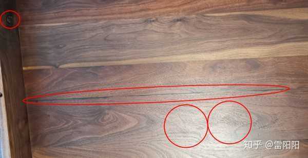黑胡桃木的“鸟啄痕”略小于指甲盖,有时候一块板上出现数个,有时候没有,整体上鸟啄痕还是常见的。