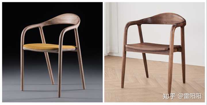 下图左边的案例是国外的作品,获得过红点设计奖,右侧的是国内作品。两把椅子有着相似的造型,但水平一目了然。