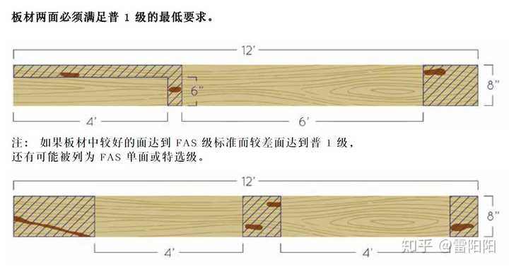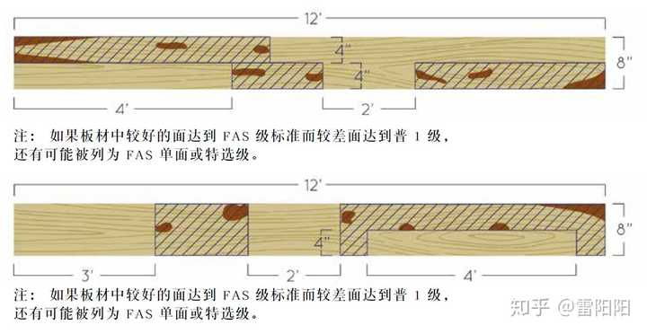 NHLA的高等级木材还包括F1F级(FAS单面,较好面满足FAS级标准,较差面满足普1级标准)和Selects级(特选级,板面最小尺寸要求大于FAS级,其他标准一致),美国出口来的FAS级是混装F1F和Selects级的,具体混装比例与品牌标准有关系,所以国内没有这两个等级。