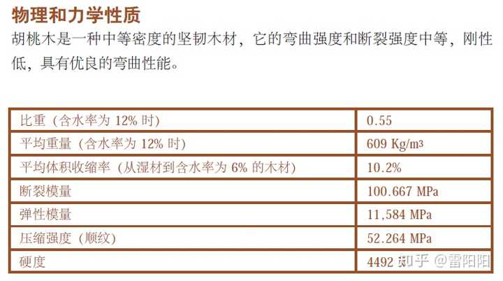 黑胡桃是 坚韧的木材,通俗说就是有韧性、不脆 。虽然在密度、硬度以及重量方面是中等,但在断裂模量及压缩强度方面黑胡桃表现良好,接近于硬枫。