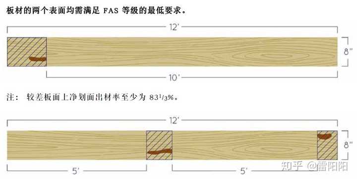 净划面出材率(占整个外表面面积) 83.3%~100% 的一系列板材。FAS级的木材可以出 大量宽幅面的长板材 ,所以非常适合高档家具。