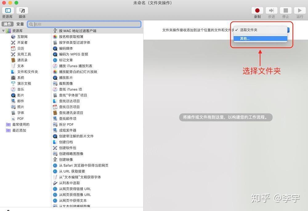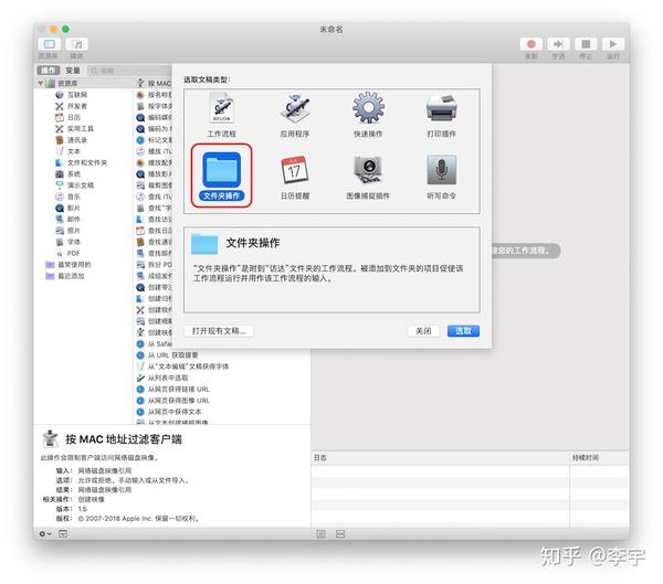 - 首先打开Automator小机器人,点击“新建“之后,选择”文件夹操作“这个类型的工作流;