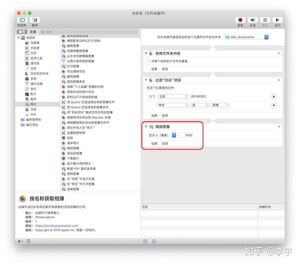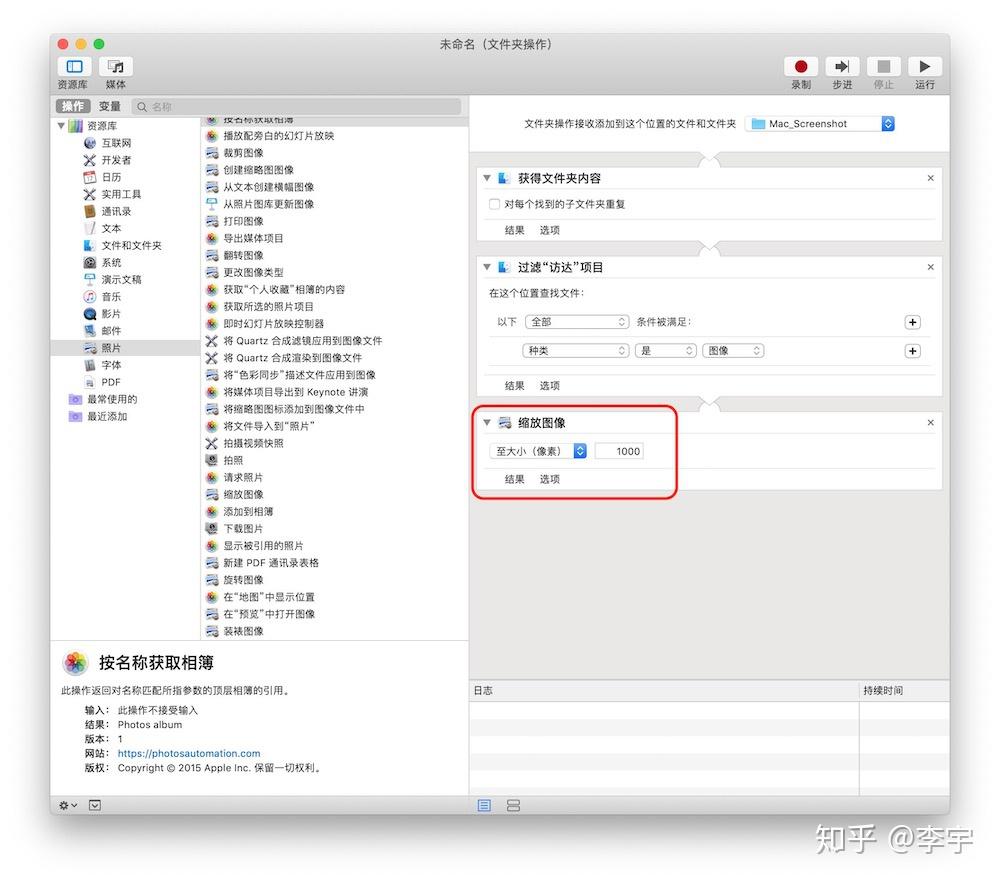 刚刚介绍的通过Preview修改图片尺寸很实用,但是我们作为效率达人需要更快些。使用Preivew来修改尺寸,你要进行“在Preview中打开图片——点击工具——进入调整大小页面——填入尺寸大小——保存”这样一系列的操作,对于一项需要频繁截屏的工作来说,有没有一种自动的方式,来让每次保存到指定地点的截图都能自动被缩减到指定宽度的尺寸大小?当然是有的,这时该Automator这个小机器人隆重登场了。我们可以利用Automator为指定的文件夹创造一个工作流,让每次保存到该文件夹的图片都能被自动按比例调整大小,就免去我们每次都需要打开Preview在里面进行的操作了。 好了,废话不多说,下面就来创建这样一个工作流: