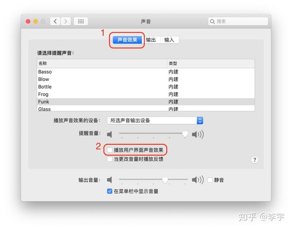 每当截图的时候都会有一声“咔嚓”的快门声,可能当截图次数很多的时候你会认为这是一种噪音。在Mac中当然可以关掉这个声音,方法是点击屏幕左上角的苹果标志,选择“系统偏好设置——声音”,然后点击其中的“声音效果”,将“播放用户界面声音效果”前的小勾勾去掉就可以了。