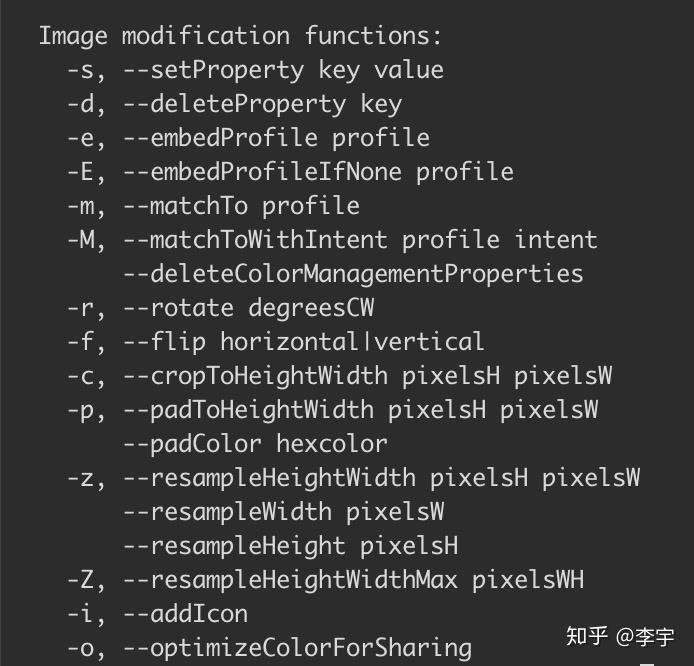 sips全称为scriptable image processing system,翻译过来就是”可脚本化图像处理系统“,是Mac中专门用来请求或修改光栅图像的,可用于AppleScript中的Image Events事件中。这里我们不对AppleScript做讨论,只是介绍sips修改图片的基本用法。关于sips命令的语法大家可以直接在命令行中输入