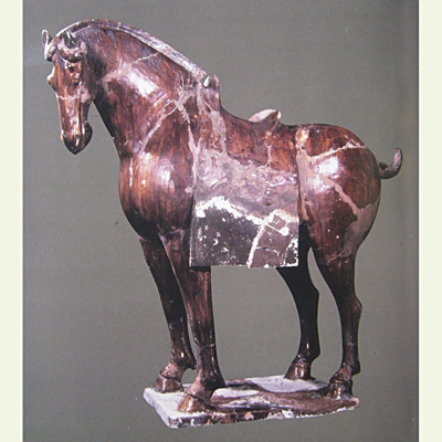 墓出土的一具,高72厘米、长80厘米。各种三彩俑的姿势各不相同,造型十分生动。其中,有几十个铠甲骑马俑,武士戴盔披甲,马面贴金,是文物中罕见的珍品。