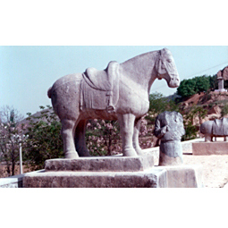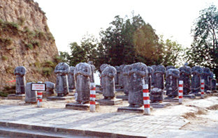 像61尊(东群29尊,西群32尊),内城四门外各置石狮2尊,北门外另有石马6匹,号称"六龙"。这百余件大型石刻,堪称“盛唐石刻艺术的露天展览馆”。据文献记载和考古资料证实,乾陵是迄今为止唯一未被盗掘的唐代帝王陵墓。