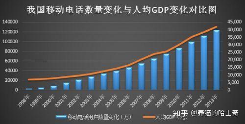 国内的换机潮已接近尾声,还有增长空间吗?应该是有的,根据工信部官网的资料显示截至2013年底,我国移动电话普及率为90%,这跟经济的发展个人收入的提高是密不可分的,可以参考下图(移动电话数量数据来源于工信部官网,人均GDP数据来自国际货币基金组织)