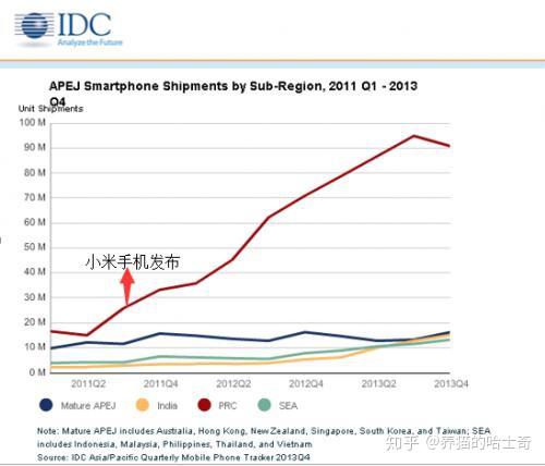 小米手机2011年下半年才发布虽然有点晚但还是赶上了全球最大的手机市场——中国大陆的的换机潮