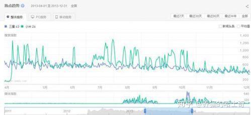 供需不平衡和饥饿营销使得黄牛有了广阔的舞台,黄牛的炒作又扩大了小米的线下影响力。对于黄牛,小米的态度并不那么坚决甚至有些暧昧,即便是不能更改预约地址这样的规定也是用户反映了很久之后才采取的。原本F码是个很好的设计,也逐渐的成为黄牛的真爱,远离了设计的初衷,就像网络游戏规定禁止买卖游戏中的货币一样可笑。除此之外,饥饿营销还带来了什么?从下面的百度指数变化可以看出带来的高关注度,而高低起伏是有一定规律的,
