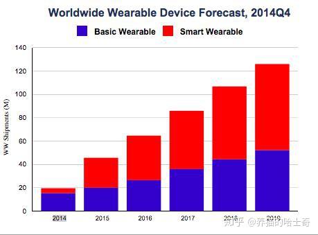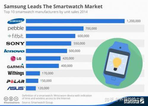 根据IDC的数据,2014年全球可穿戴产品的出货量约为1920万台,其中智能可穿戴(可装第三方软件的,主要是智能手表)设备2014年共售出约420万。而statista前段时间公布的一个智能手报告显示三星以120万的出货量占据了超过17.65%的市场,比IDC的数字要高一些。2014年全球智能手机的出货量超过11亿部,跟这比起来智能穿戴刚刚处于起步阶段,也可以说未来有着更广阔的空间。