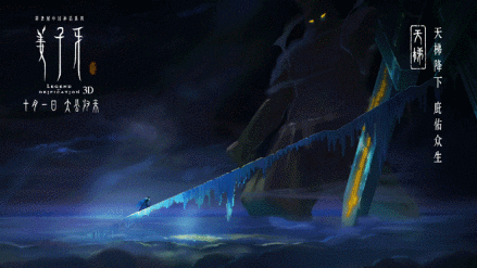 影片三维动画部分第一个镜头,前后耗时3个月时间反复修改。不仅巨斧上的积雪全部通过手绘制作完成,连巨斧上的纹样、风化痕迹、地面积雪等都一一细致设计。