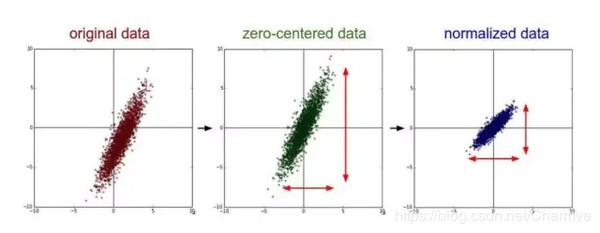 - 去均值 :把输入数据各个维度都中心化为0,如下图所示,其目的就是把样本的中心拉回到坐标系原点上。
