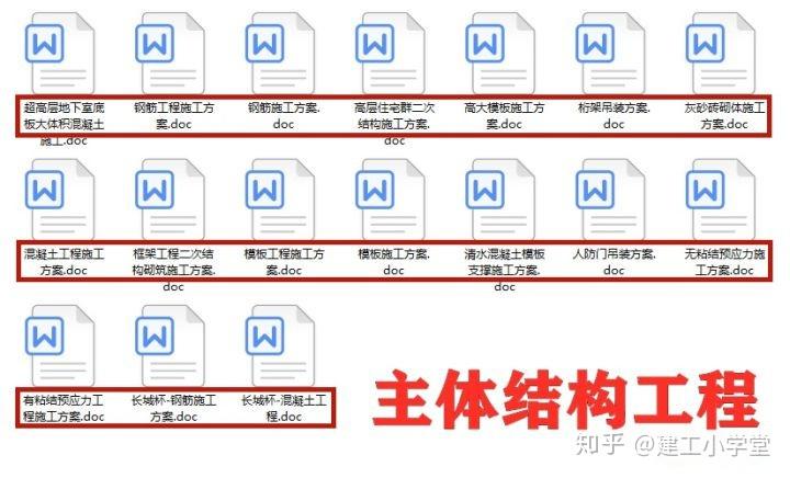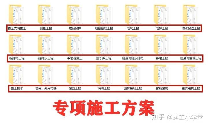 同时这些施工方案都已分类整理好,按照实际工程就可以查找使用,根据现场实际施工情况稍加修改, 就可以直接拿来套用,具有极强的实用性 。