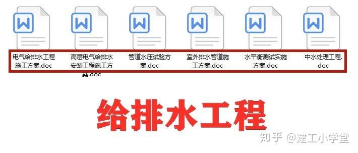 主要包括了 高层电气给排水安装工程、电气给排水工程施工方案、管道水压试验方案、室外排水管道施工方案 等等。